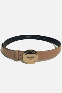 Pasek Emporio Armani z okrągłą klamrą na bolec w kolorze złotym 75 beżowy