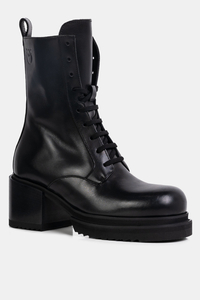 PINKO sztyblety skórzane czarne sznurowane na obcasie Honneger