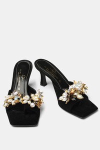 Elina Linardaki skórzane klapki damskie na obcasie Sinner Heel Black