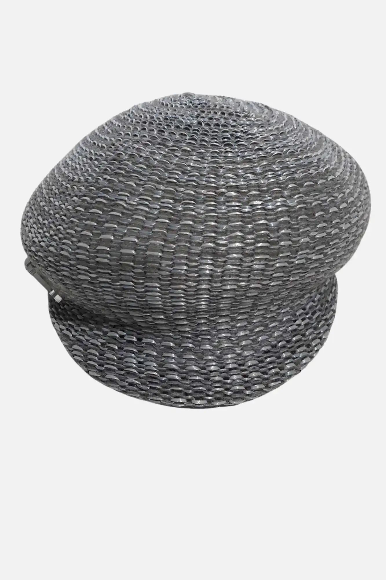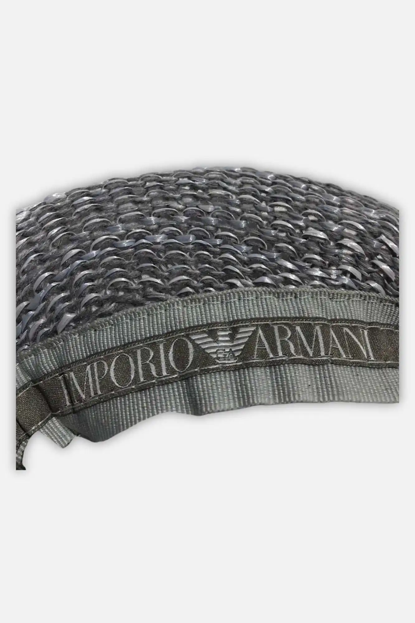 Stylowy kaszkiet damski marki Emporio Armani w odcieniu szarości o lekkim metalicznym połysku. Ten model to połączenie elegancji z miejskim luzem. Świetnie sprawdzi się w minimalistycznych jak i bardziej ekstrawaganckich lookach.