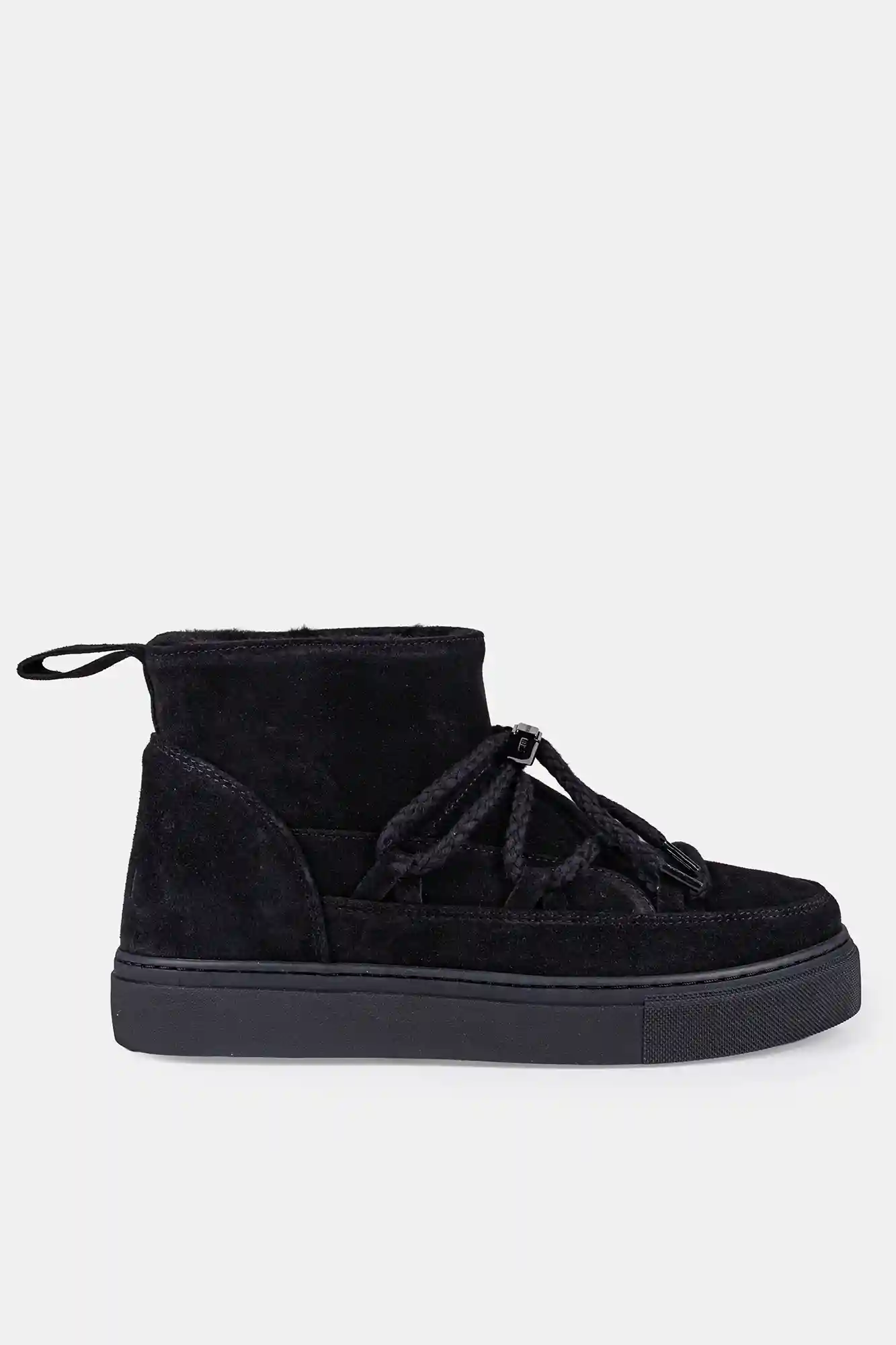 Klasyczne czarne śniegowce Inuikii, wykonane z naturalnej owczej skóry, z wierzchu zamszowej. Bardzo wygodne, futrzane wnętrze umożliwia chodzenie na gołą stopę. Podeszwa wykonana z wysokogatunowego tworzywa zapewnia dobrą izolację od zimnego podłoża.