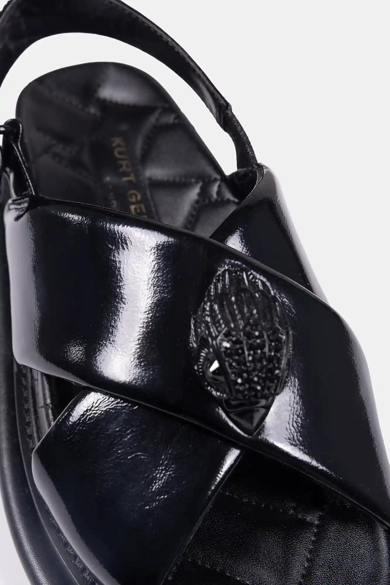 Skórzane sandały Kurt Geiger wykonane z naturalnej skóry lakierowanej w kolorze czarnym.
