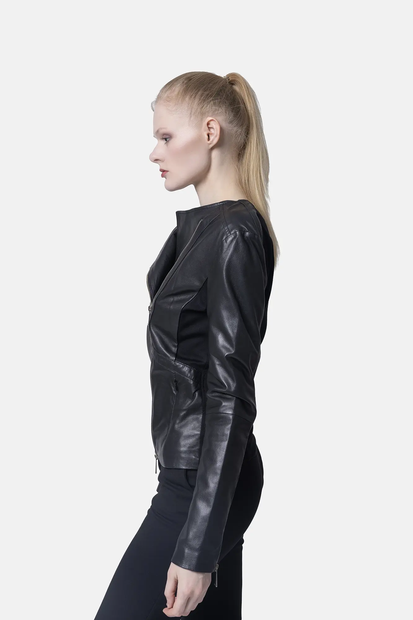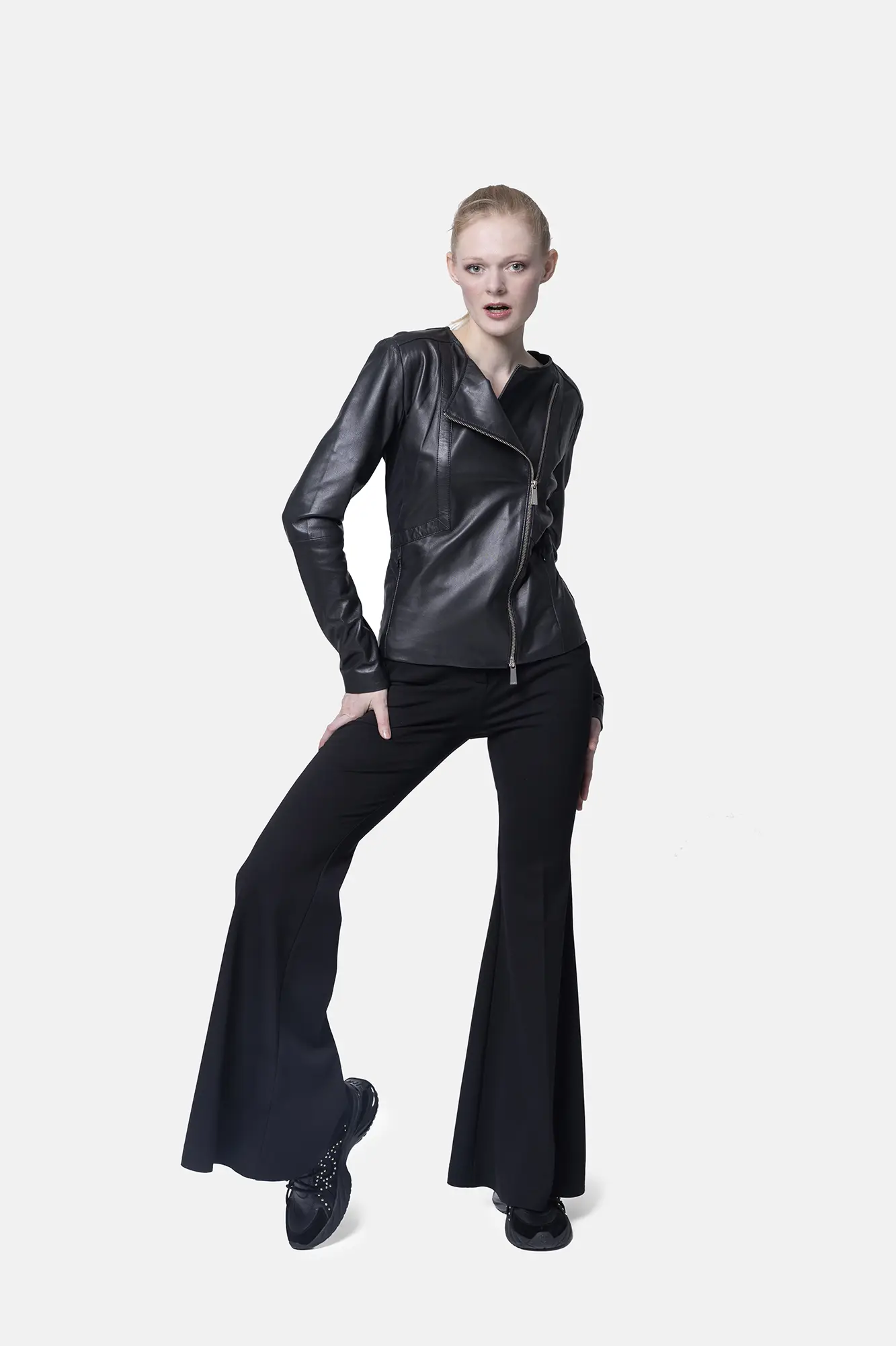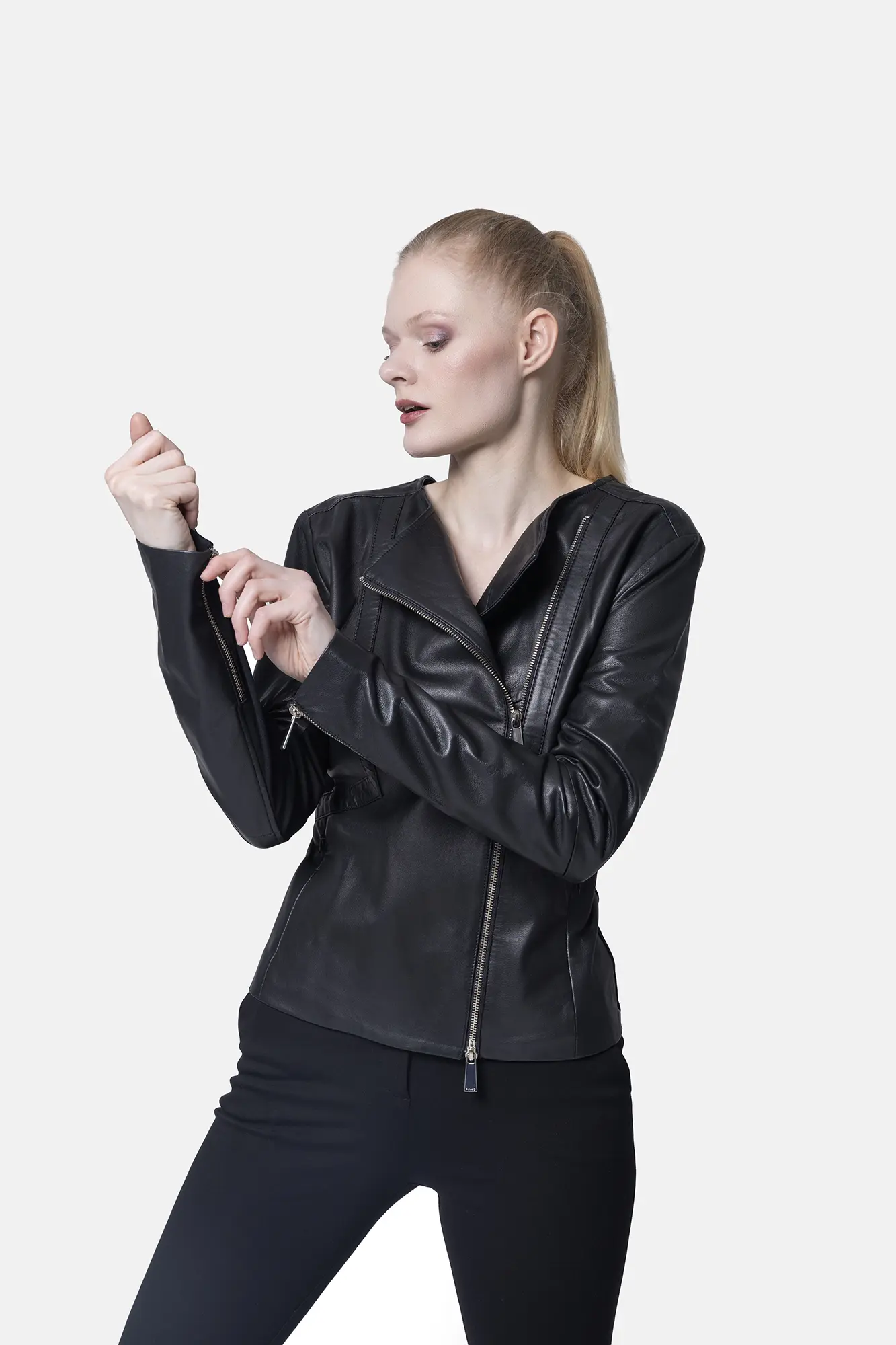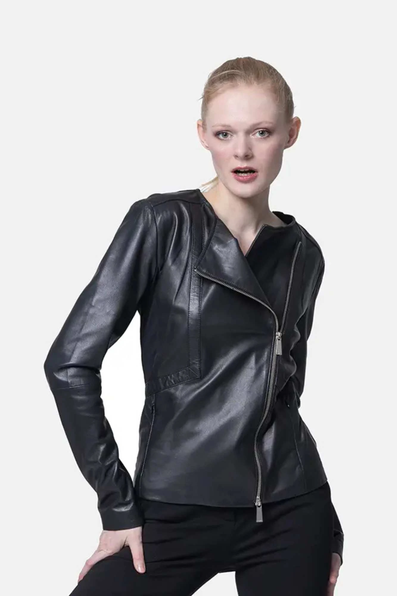 Kurtka skórzana zapinana na ukos - szczegóły modelu: