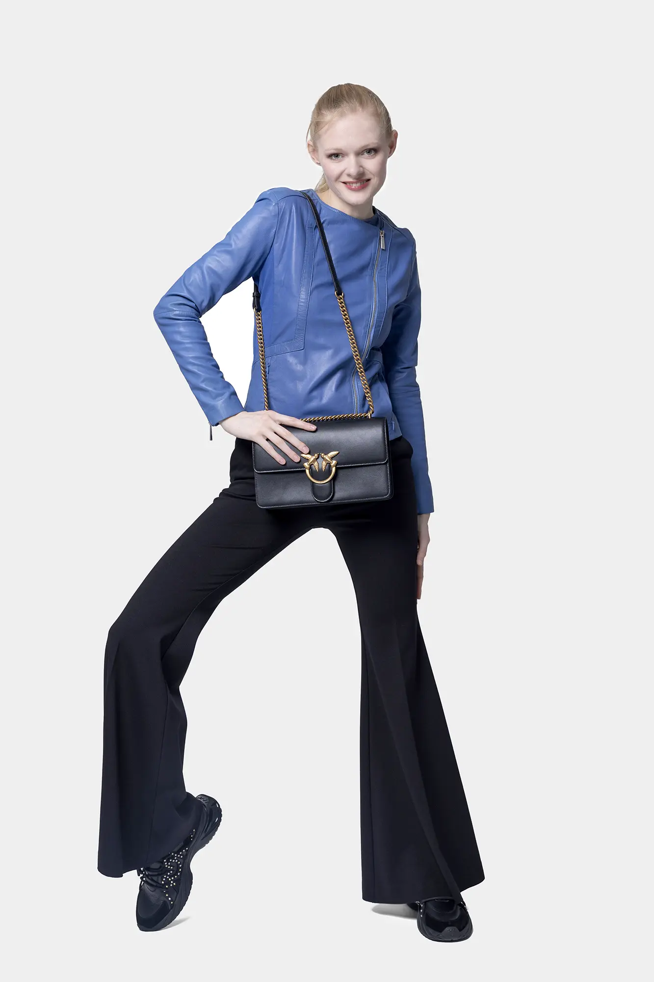 Damska kurtka skórzana PINKO, z asymetrycznym zapięciem, wykonana z najwyższej jakości skóry naturalnej. Zapięcie na ukos pozwala tworzyć niezliczoną ilość ciekawych stylizacji. Kurtka z rockowym pazurem i wyróżniającym się fasonem. Przód oraz zewnętrzna strona rękawów zostały wykonane ze skóry, a tył i wewnętrzna strona rękawów z elastycznego materiału. Kurtka świetnie układa się do sylwetki.