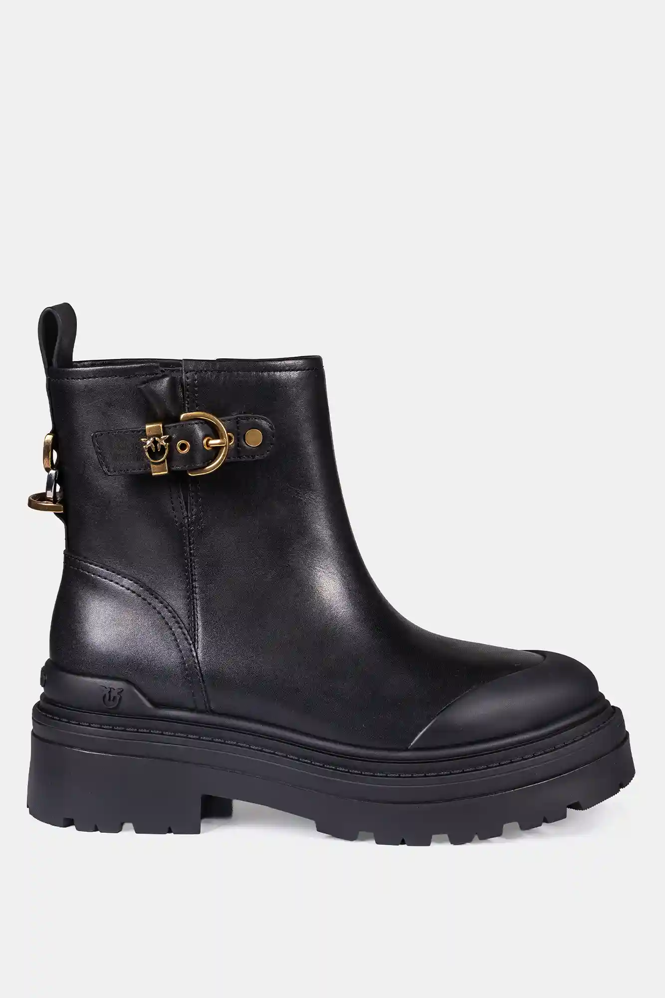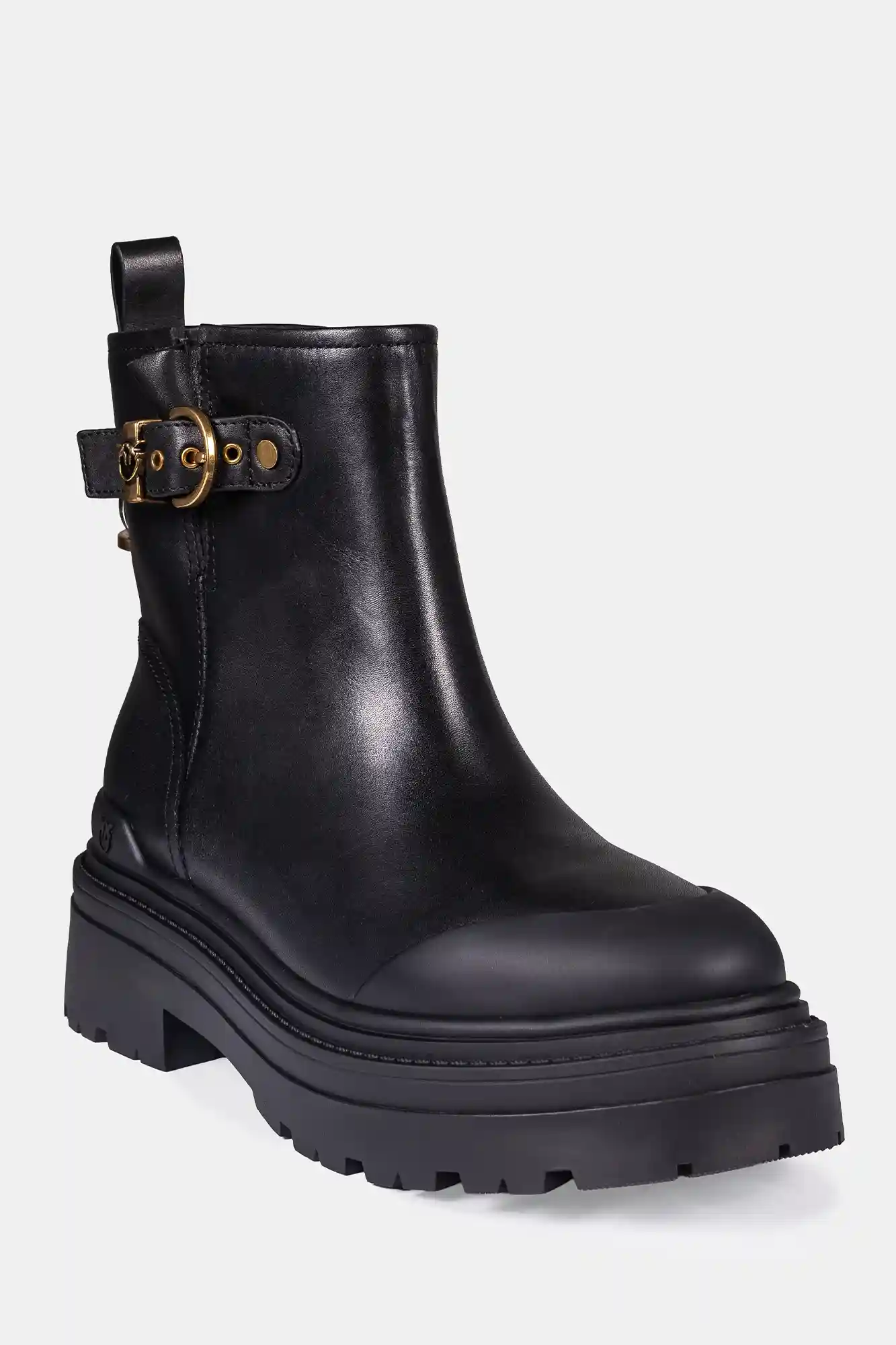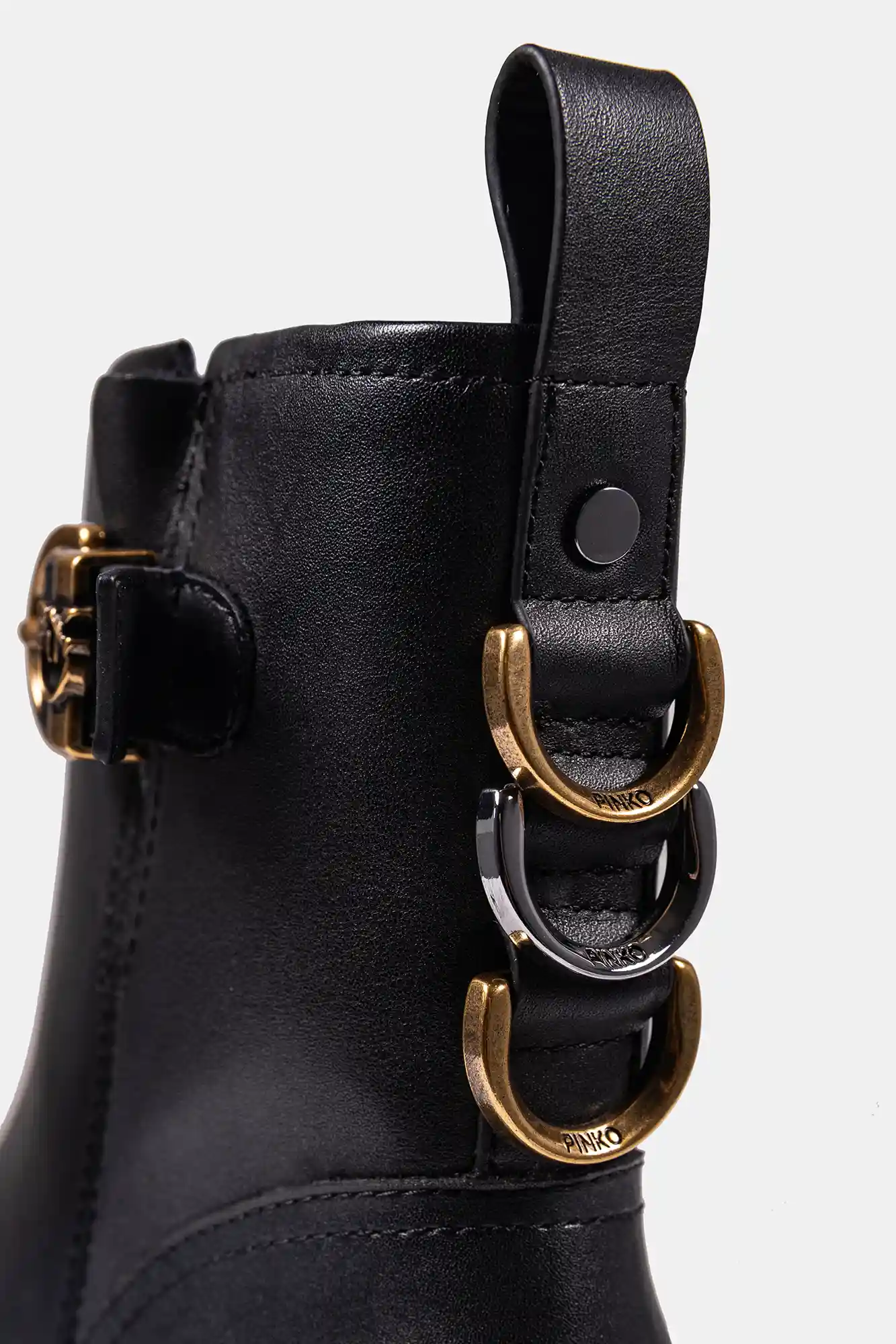 Pinko botki damskie za kostkę na grubej podeszwie, szczegóły modelu: