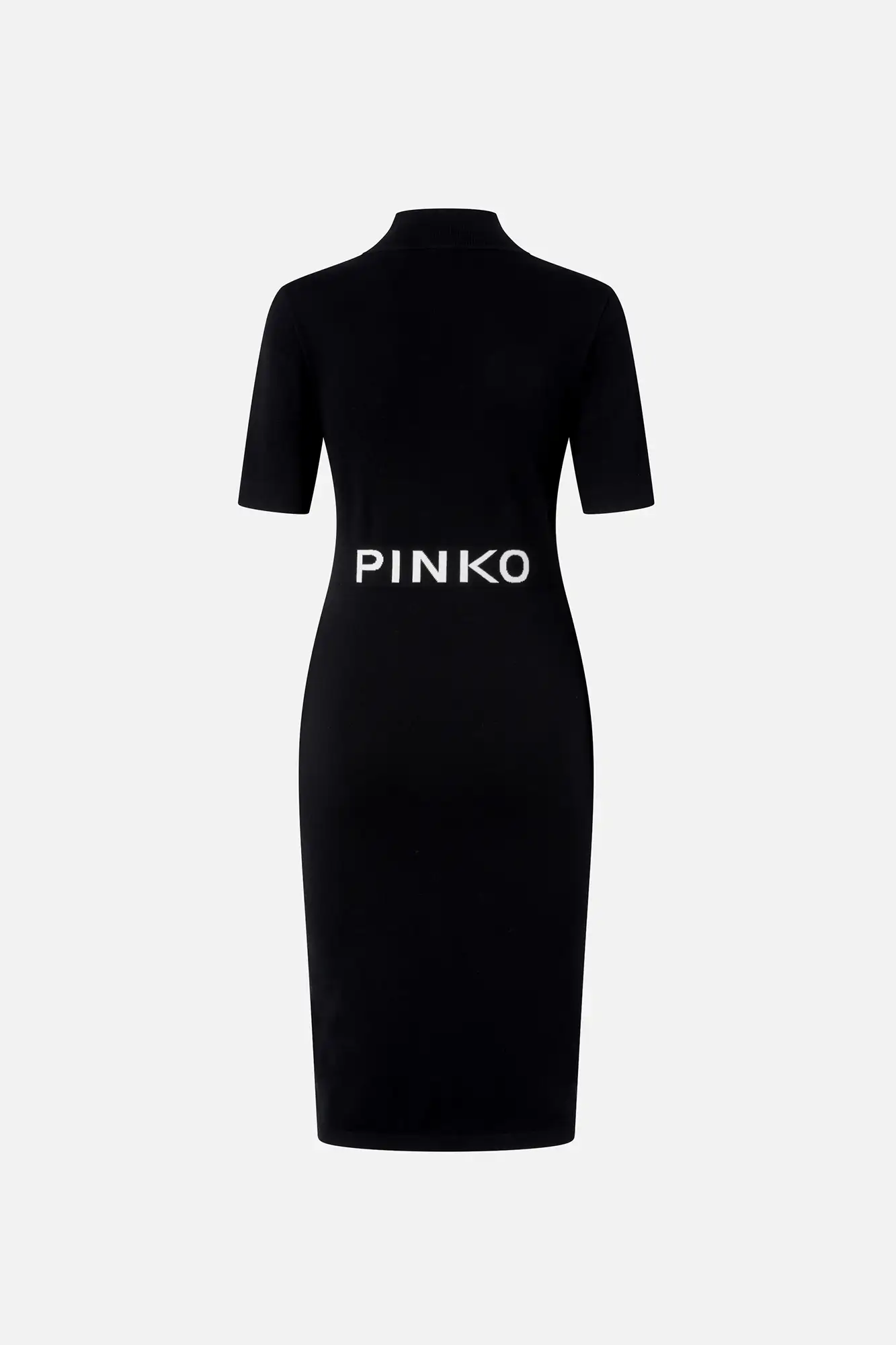 - Ozdoba: Duży widoczny napis PINKO na przodzie oraz z tyłu sukienki