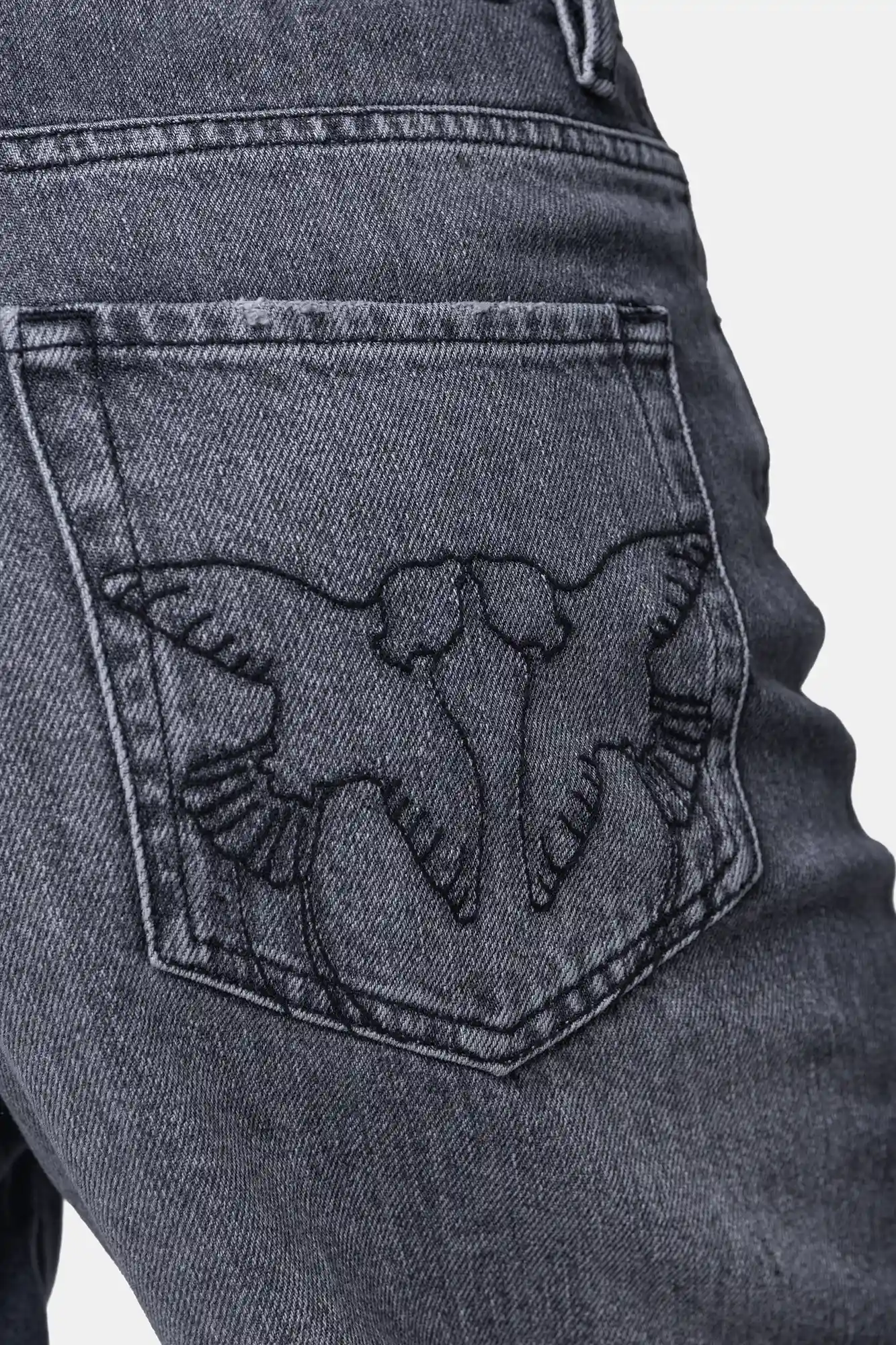 Jeansy szare z efetem przetarcia - szczegóły modelu: