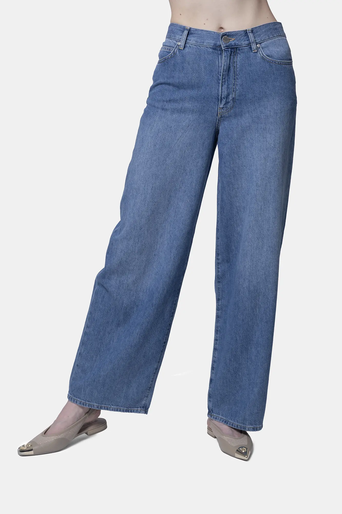 Jeansy o luźnym kroju, lekkie, z wydłużonymi nogawkami, wykonane z przewiewnego i luźno tkanego materiału w jasno-niebieskim kolorze. Styl i wygoda dla nowoczesnej kobiety.