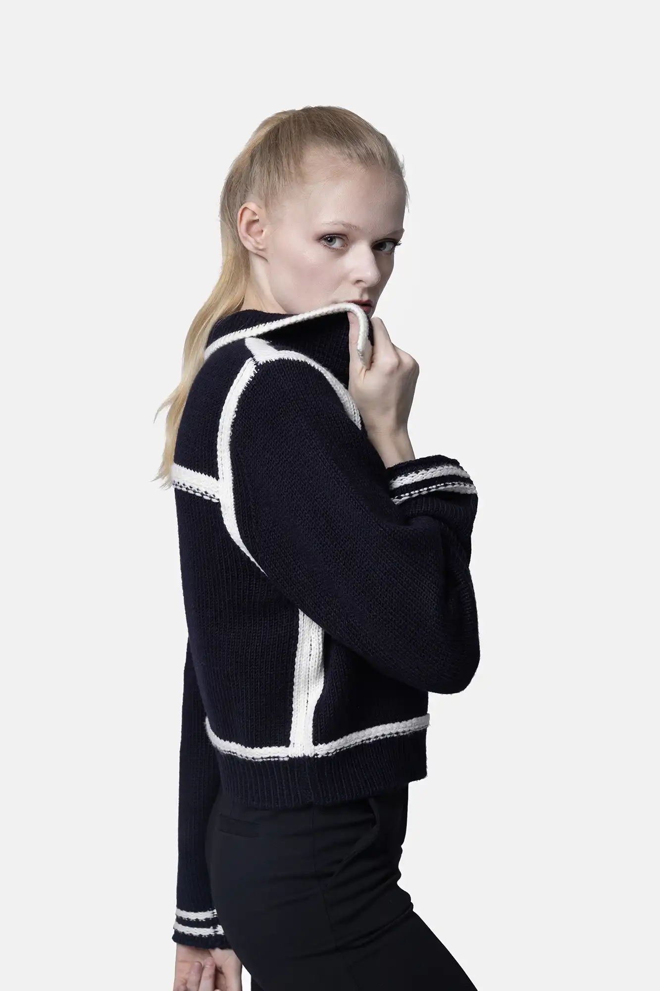 Piękny kardigan damski z wełny merynosów, zapinany na guziki ozdobione gwiazdką w kolorze srebrnym. Ten model to połączenie elegancji w stylu włoskiej Riwiery ze stylem preppy. Wykonany z ciepłej wełny merynosów, gwarantuje wysoki komfort noszenia. Wysoką jakość wykonania i trwałość materiału potwierdzono w testach. Z tyłu, pod kołnierzem, umieszczono naszywkę z nazwą marki.