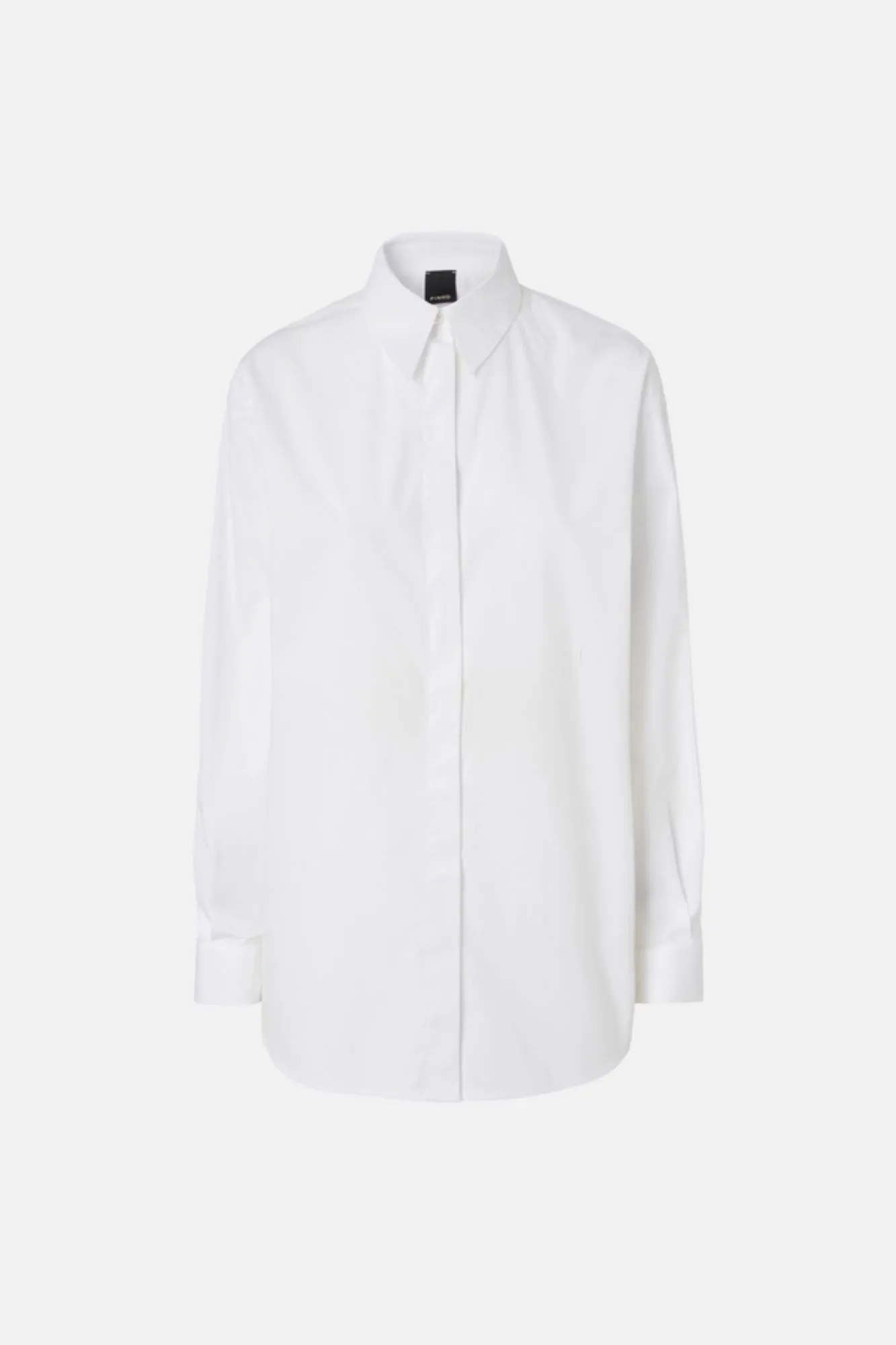 PINKO koszula damska klasyczny fason z kołnierzykiem o lekkim kroju wykonana z naturalnej bawełny. Ten klasyczny model koszuli o lekko oversizowym kroju sprawdzi się w każdej eleganckiej stylizacji.