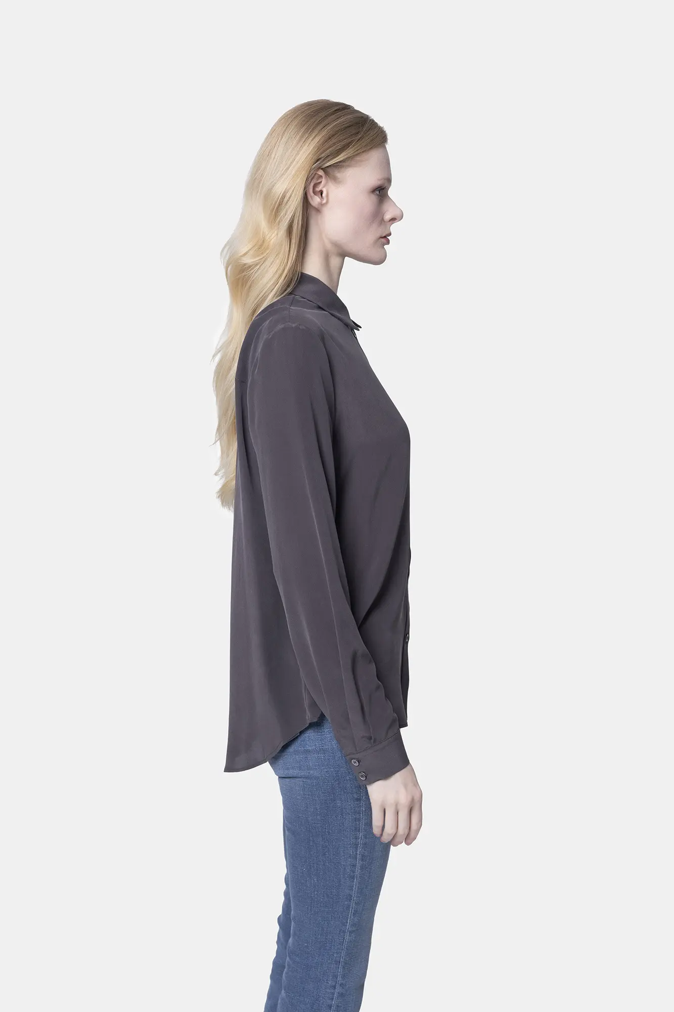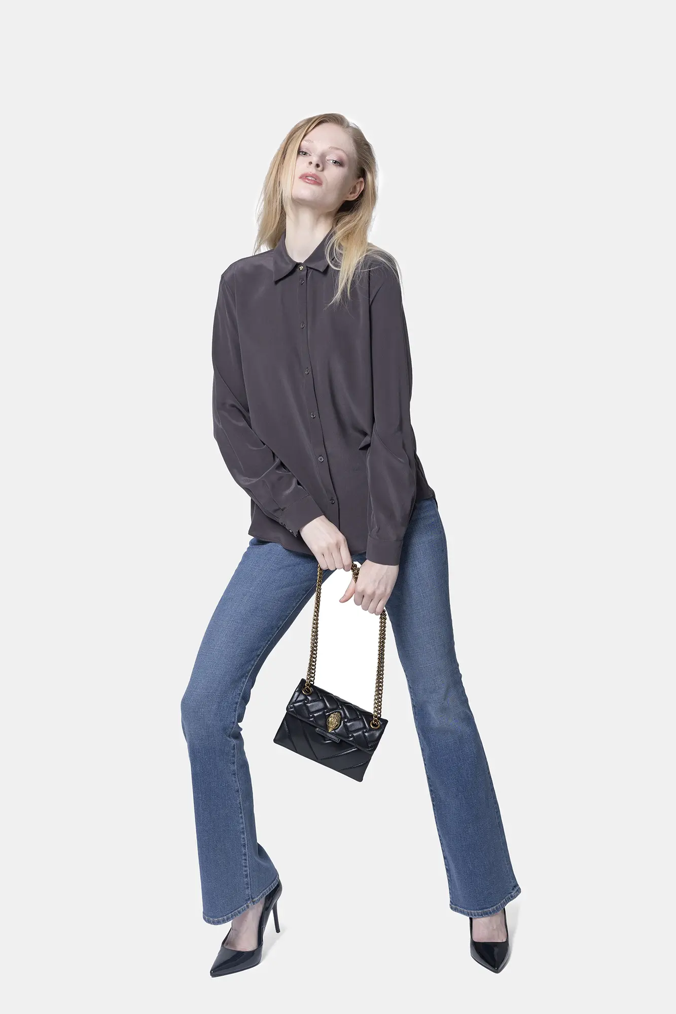 Modelka ma wzrost 177 cm i ma na sobie koszulę damską w rozmiarze 42 włoskim, czyli 38 polskim.