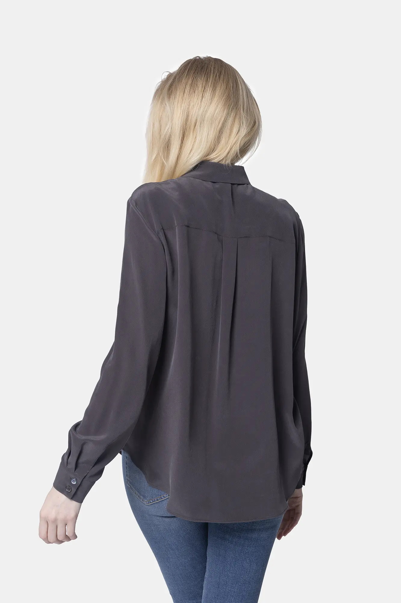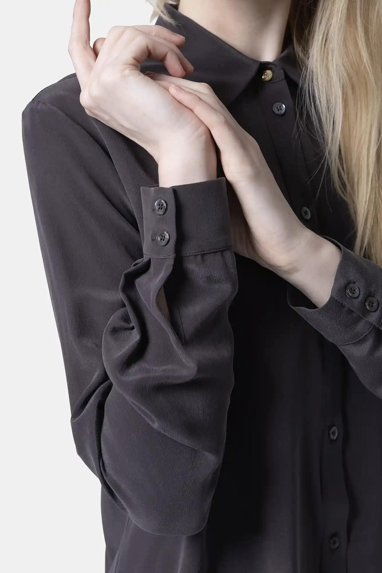 Modelka ma wzrost 177 cm i ma na sobie koszulę damską w rozmiarze 42 włoskim, czyli 38 polskim.