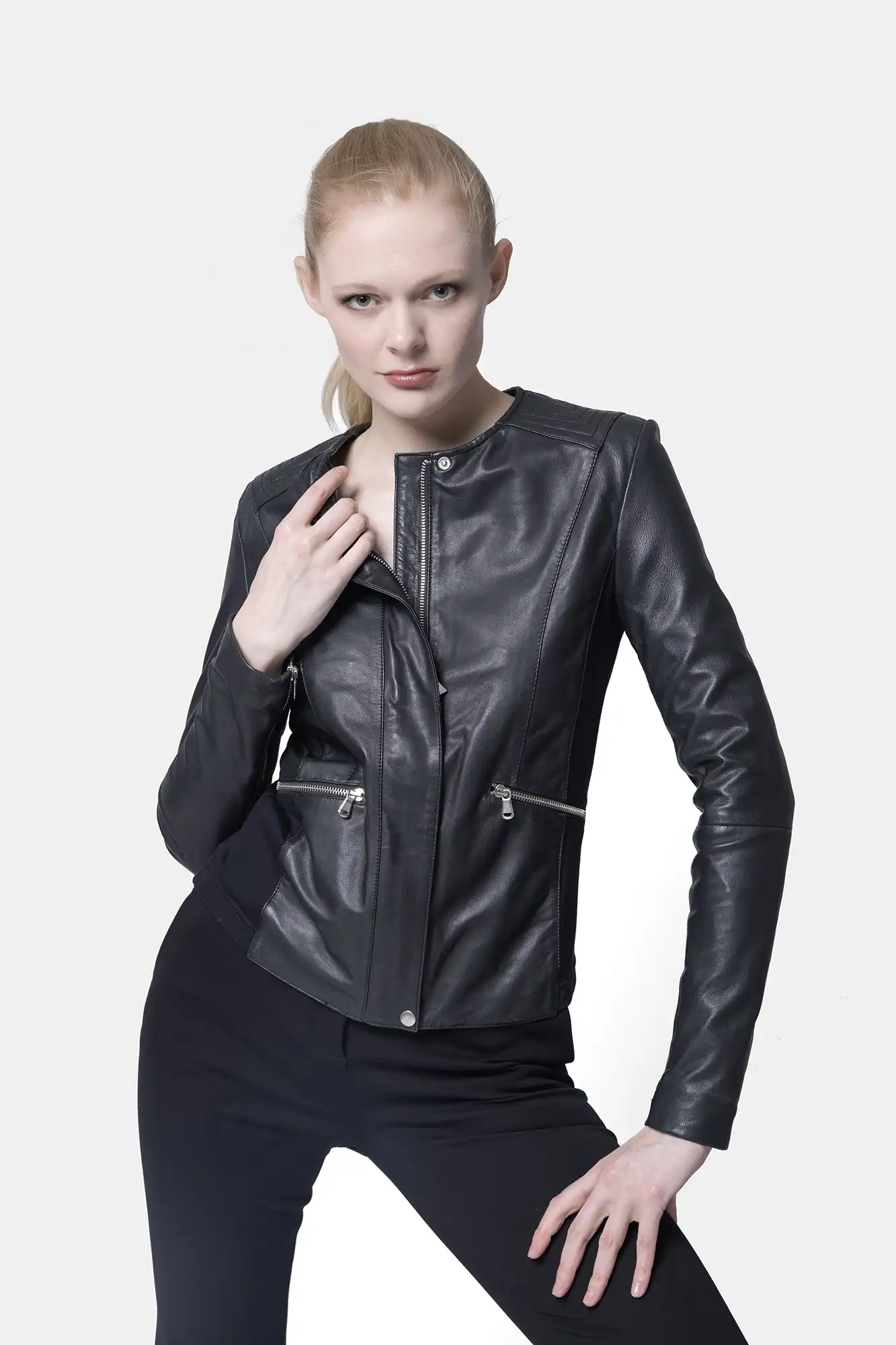 Kurtka skórzana damska dopasowana - szczegóły modelu:
