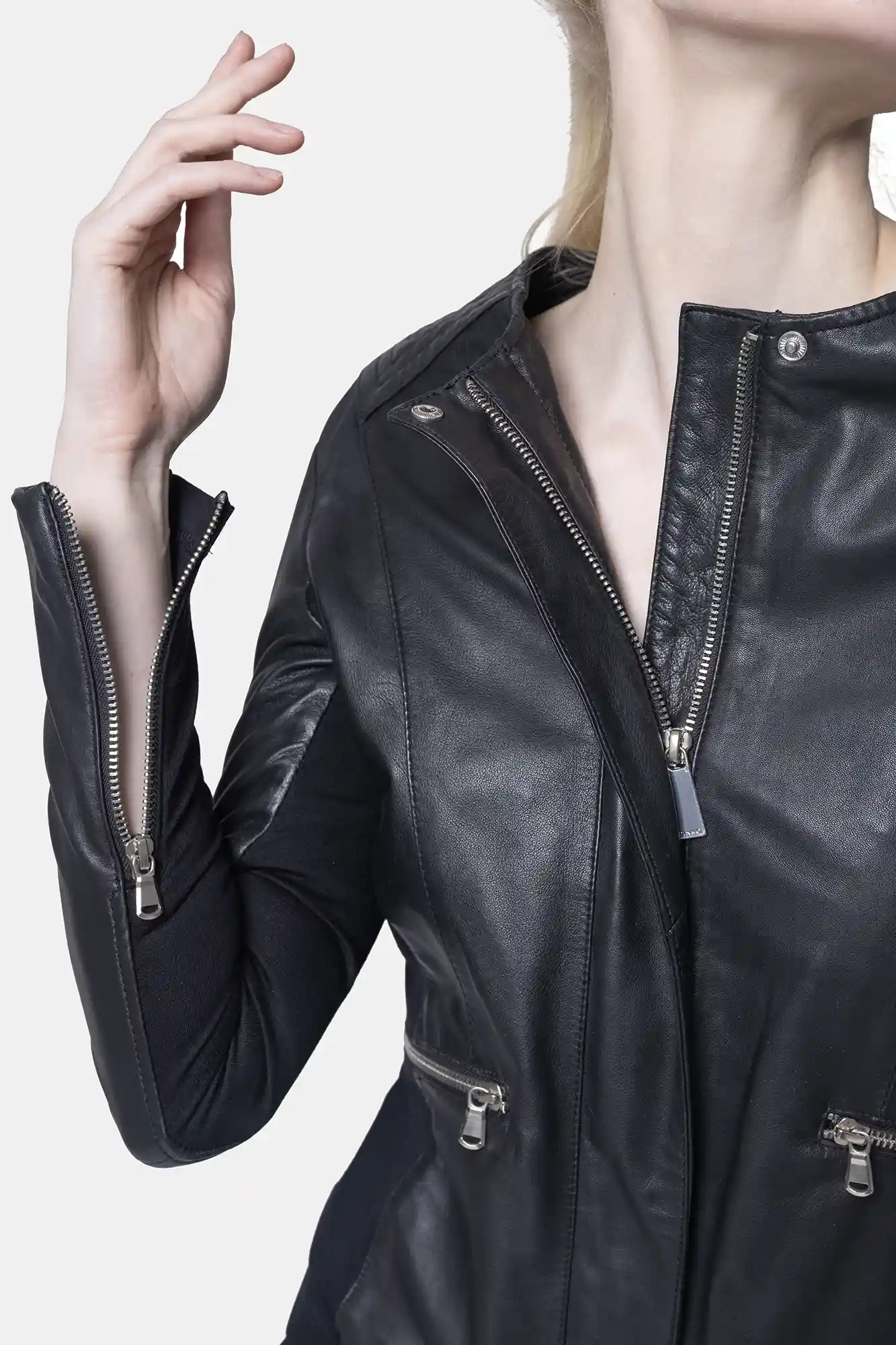 Kurtka skórzana damska dopasowana - szczegóły modelu: