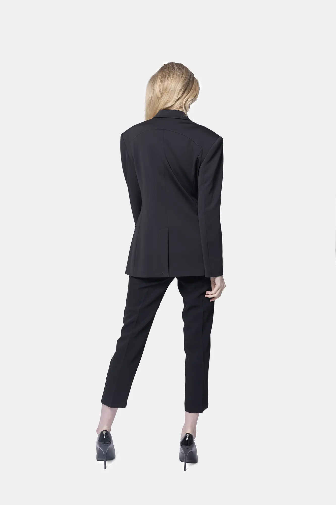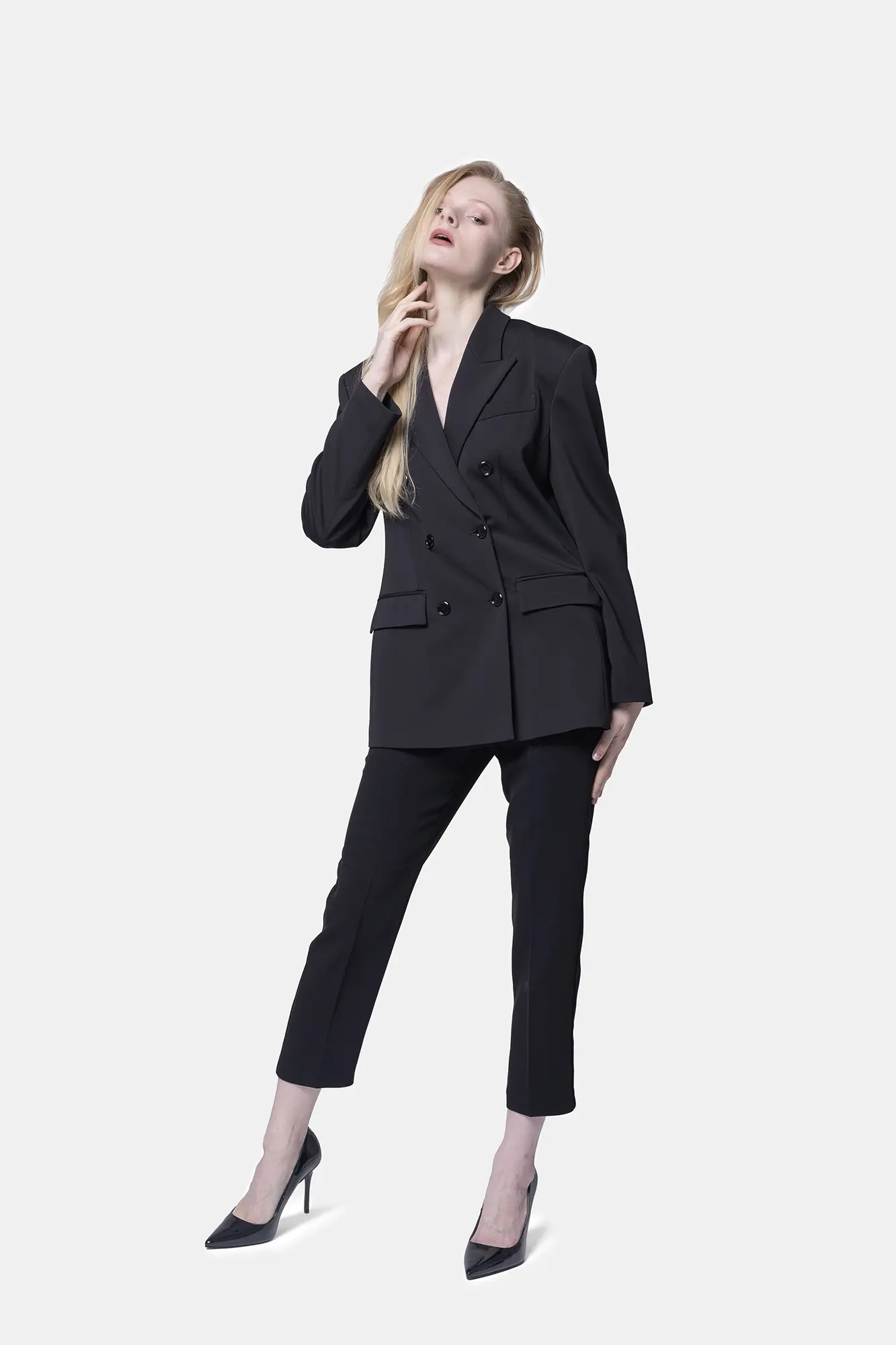 Eleganckie spodnie typu cygaretki o klasycznym kroju, z wysokim stanem. Po bokach dwie kieszenie, spodnie są zapisane na kryty zamek z tyłu. Klasyczna, ciekawa propozycja do codziennego noszenia oraz na formalne okazje, gdy chcesz wyglądać stylowo i czuć się komfortowo przez cały dzień.