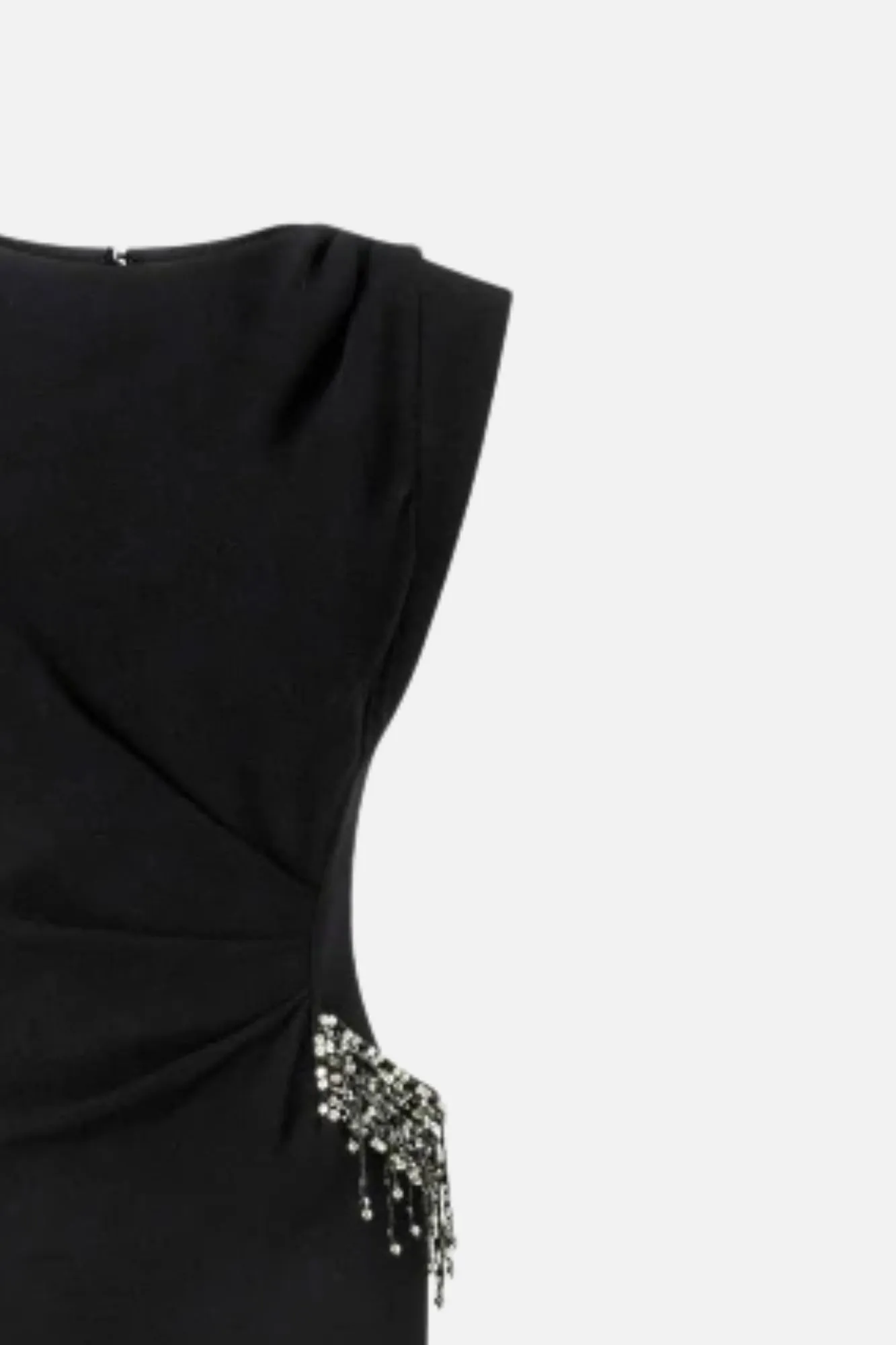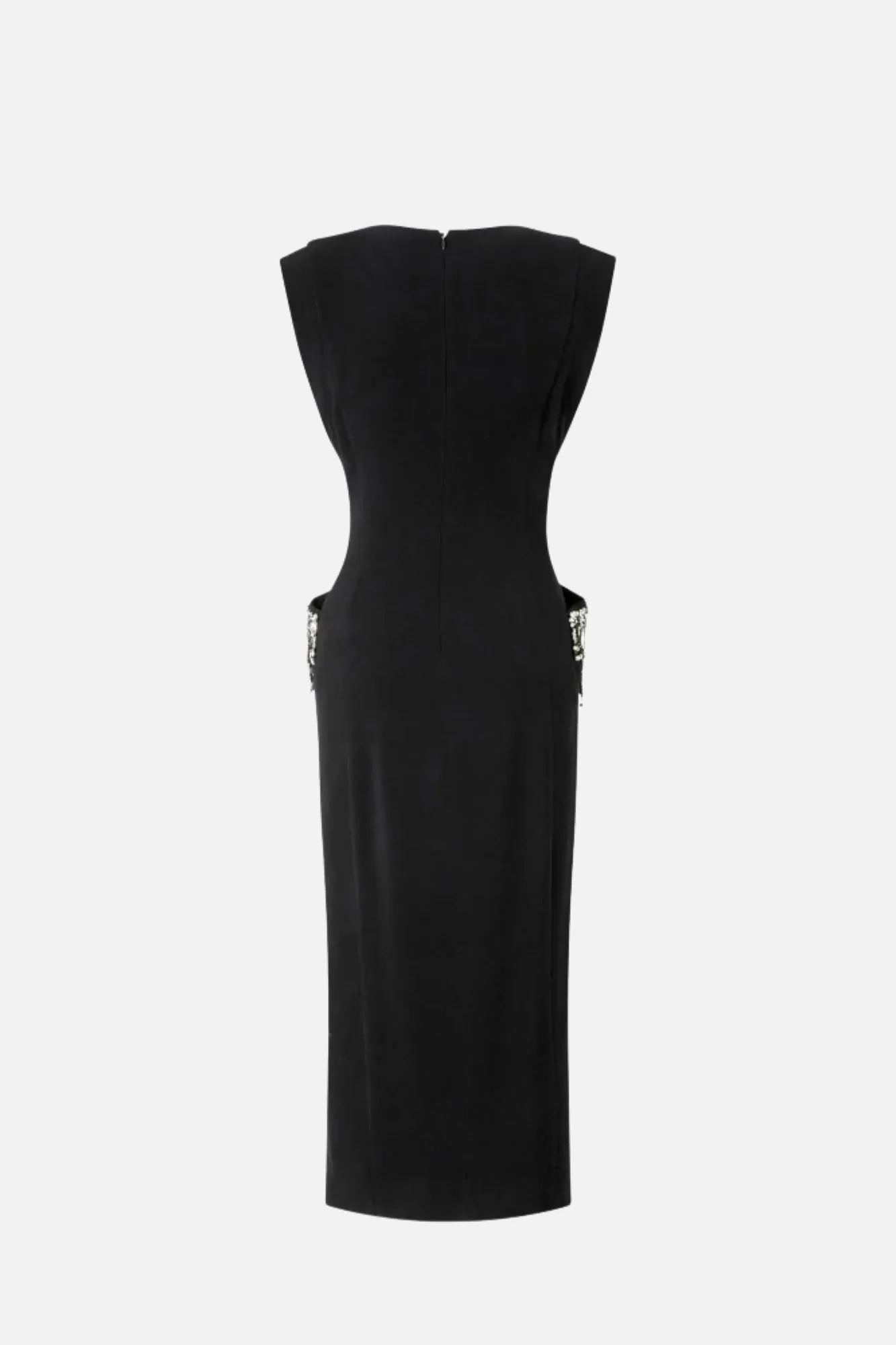 Elegancka czarna sukienka midi wieczorowa - szczegóły modelu: