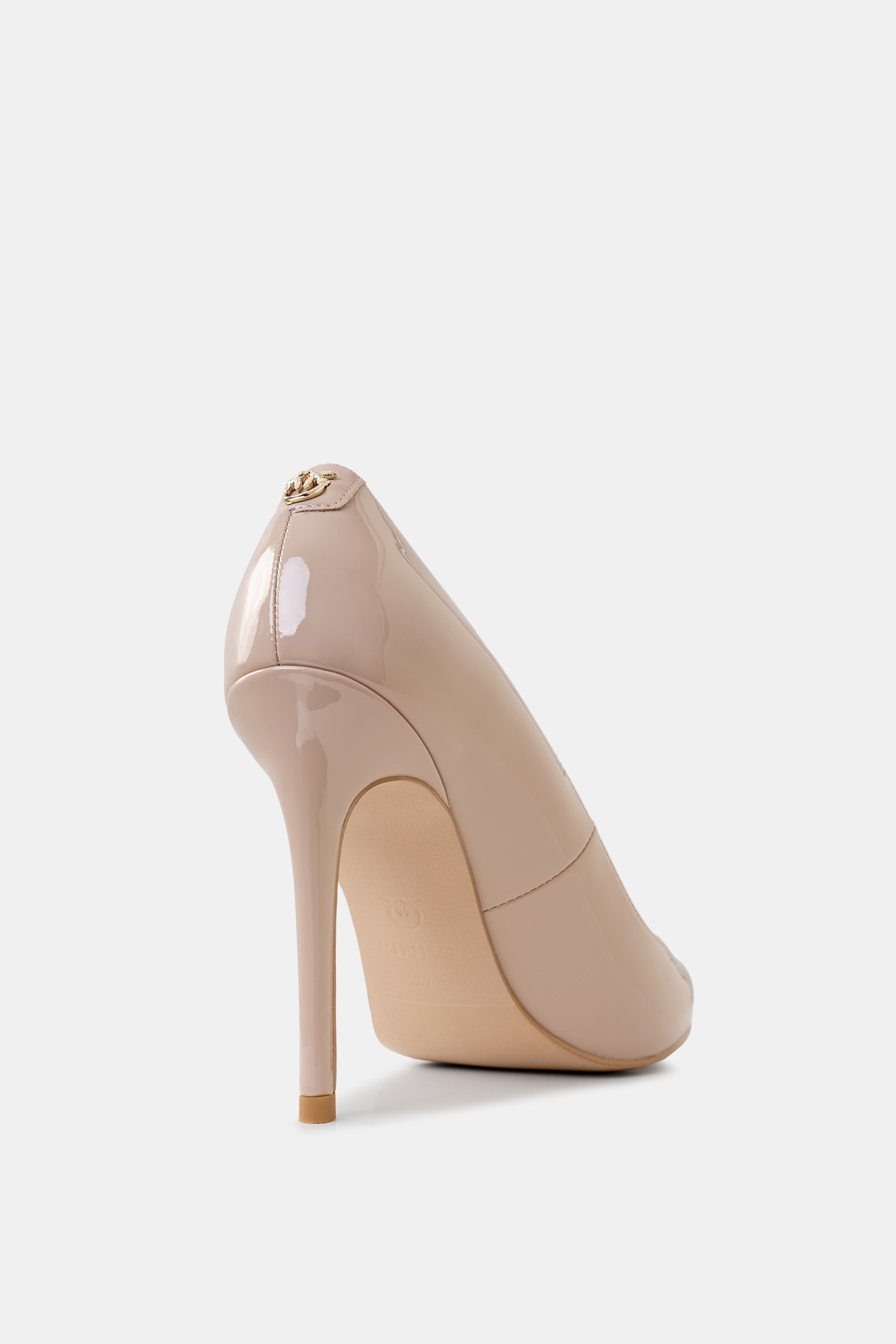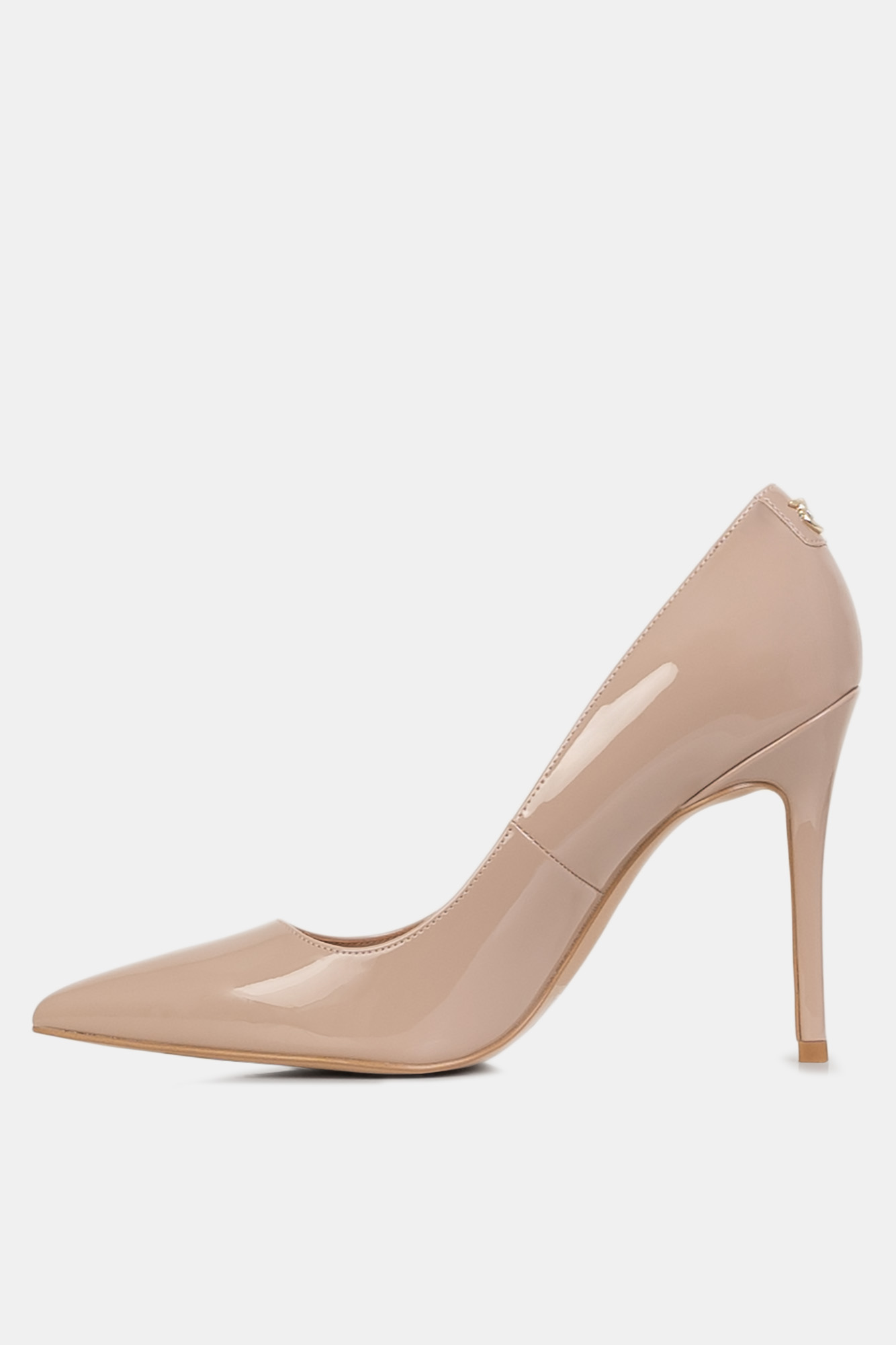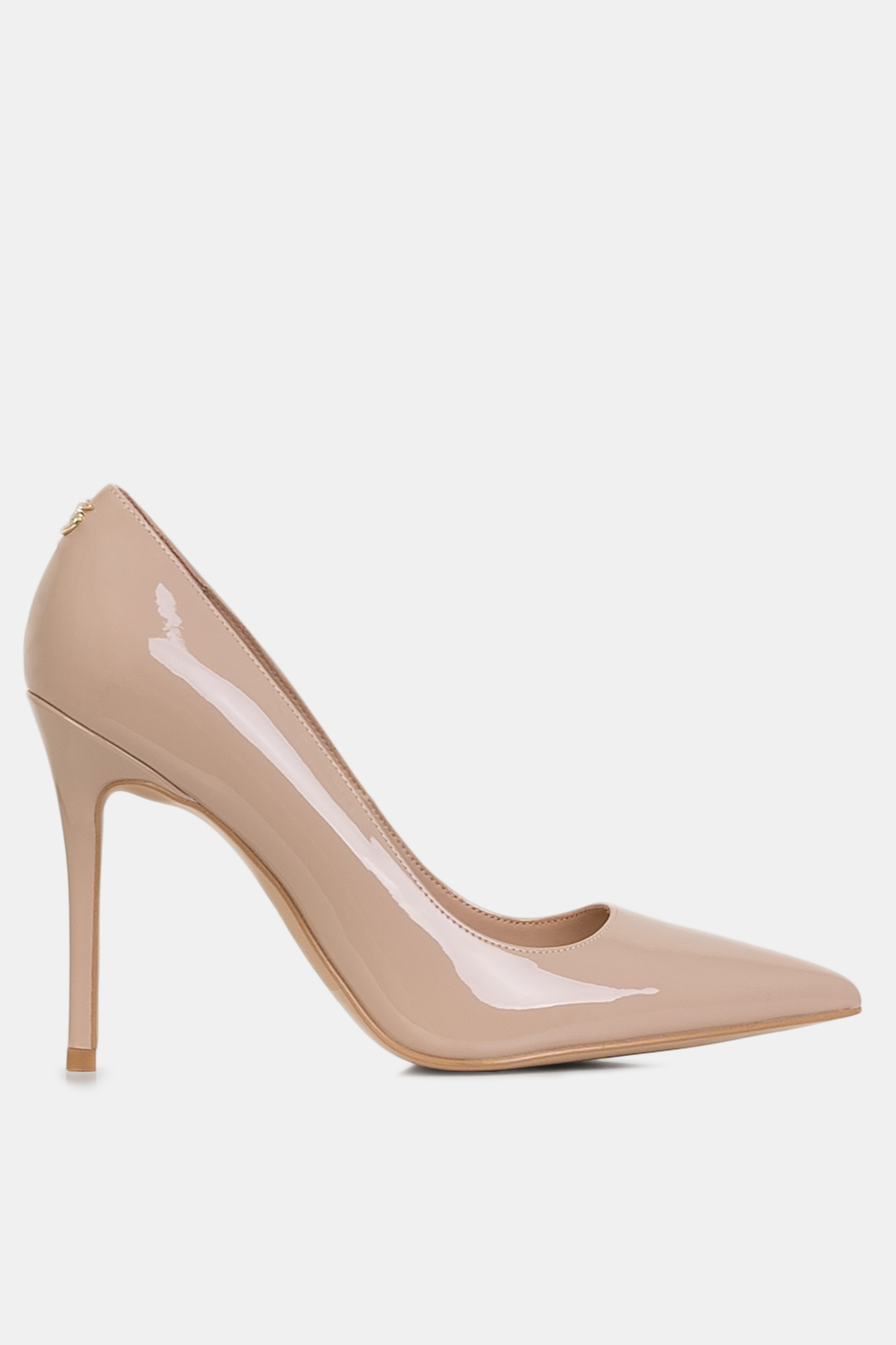 Klasyczne beżowe szpilki PINKO z wysokim obcasem i szpiczastymi noskami, które pięknie modelują stopę.