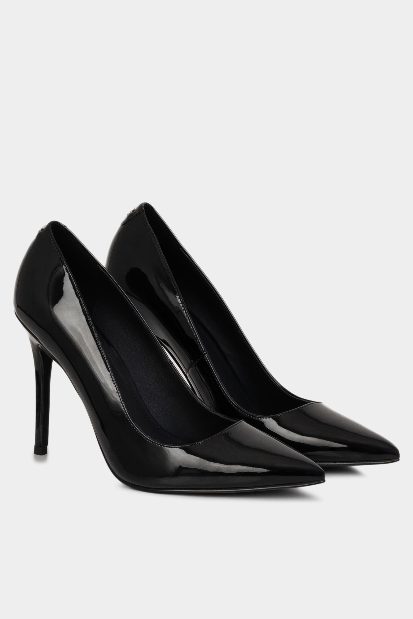 Klasyczne szpilki PINKO z obcasem wysokość 10,5 cm, wykonane z lakierowanej skóry ekologicznej, pięknie wysmuklają stopę i nadają sylwetce elegancji.