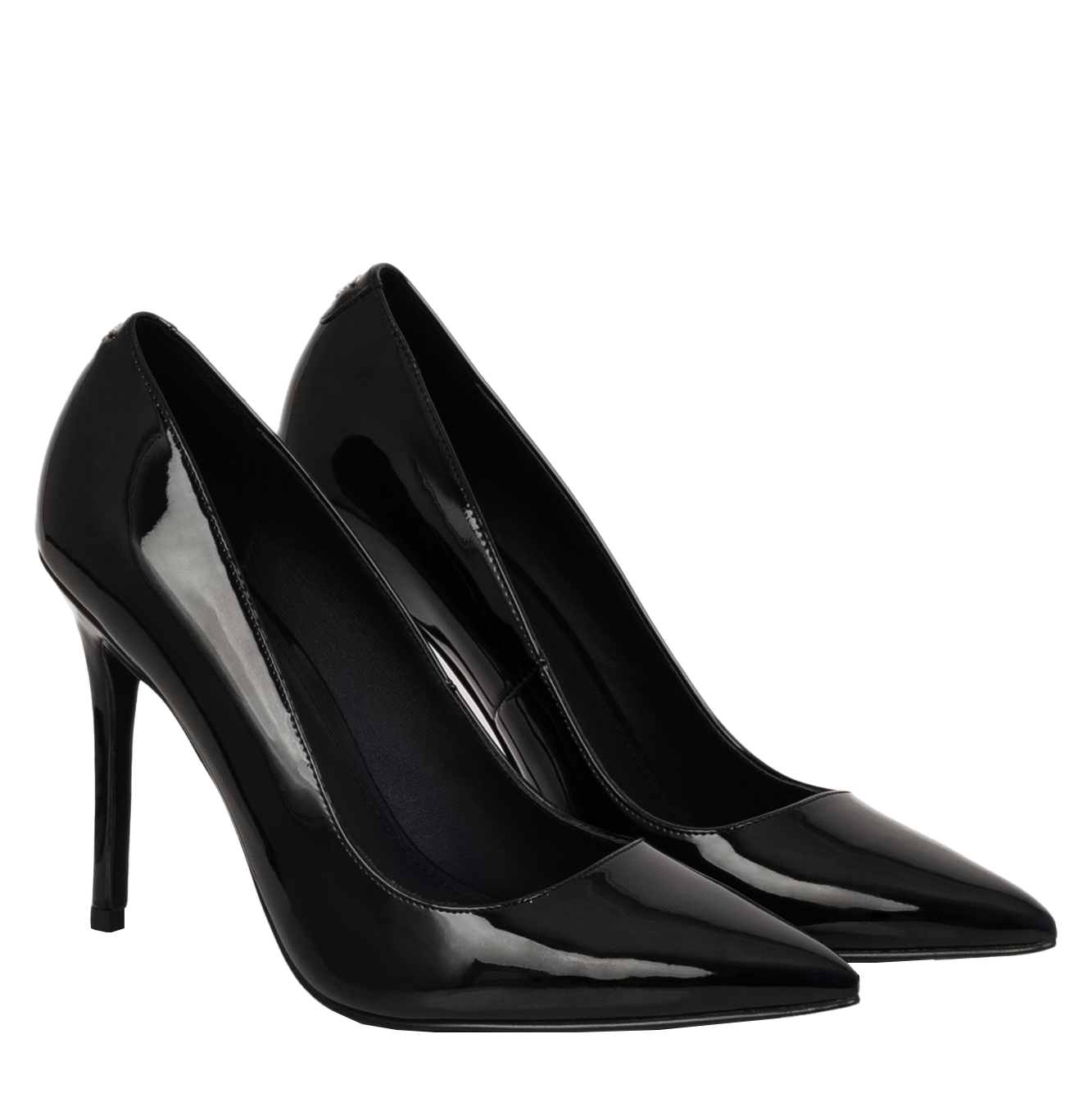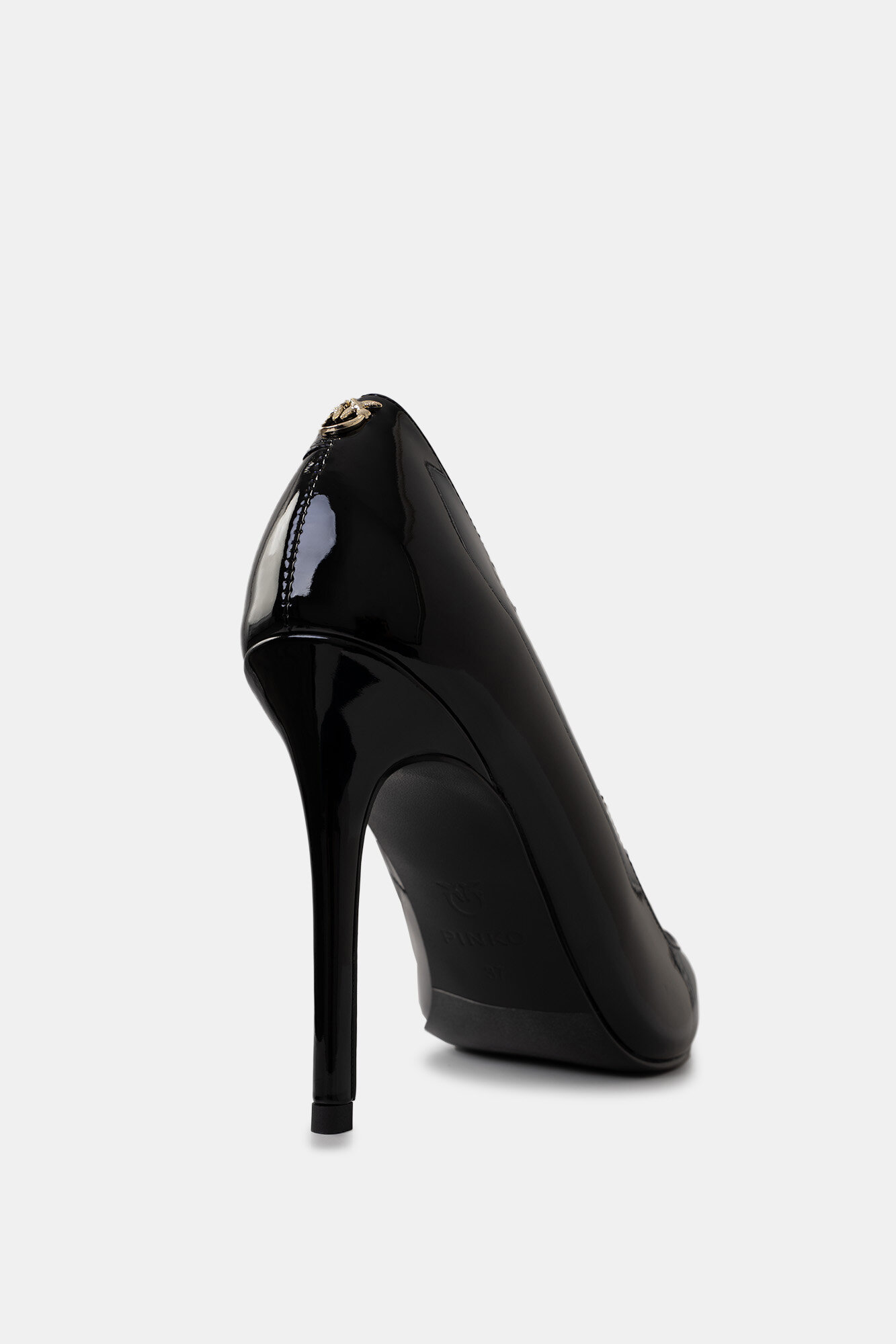 Klasyczne szpilki PINKO z obcasem wysokość 10,5 cm, wykonane z lakierowanej skóry ekologicznej, pięknie wysmuklają stopę i nadają sylwetce elegancji.
