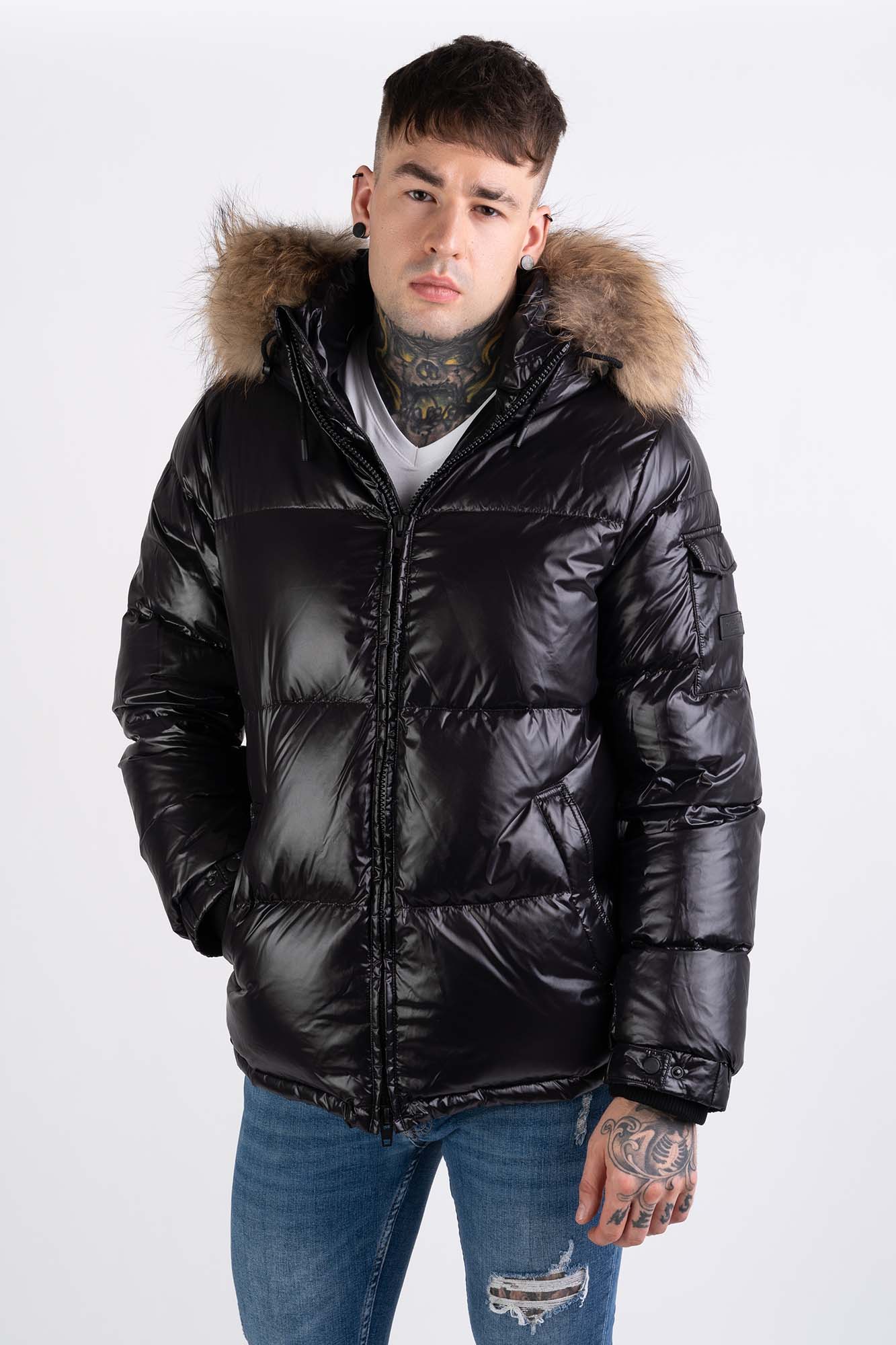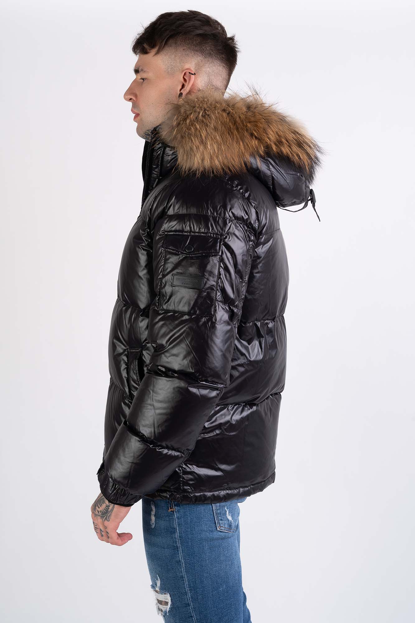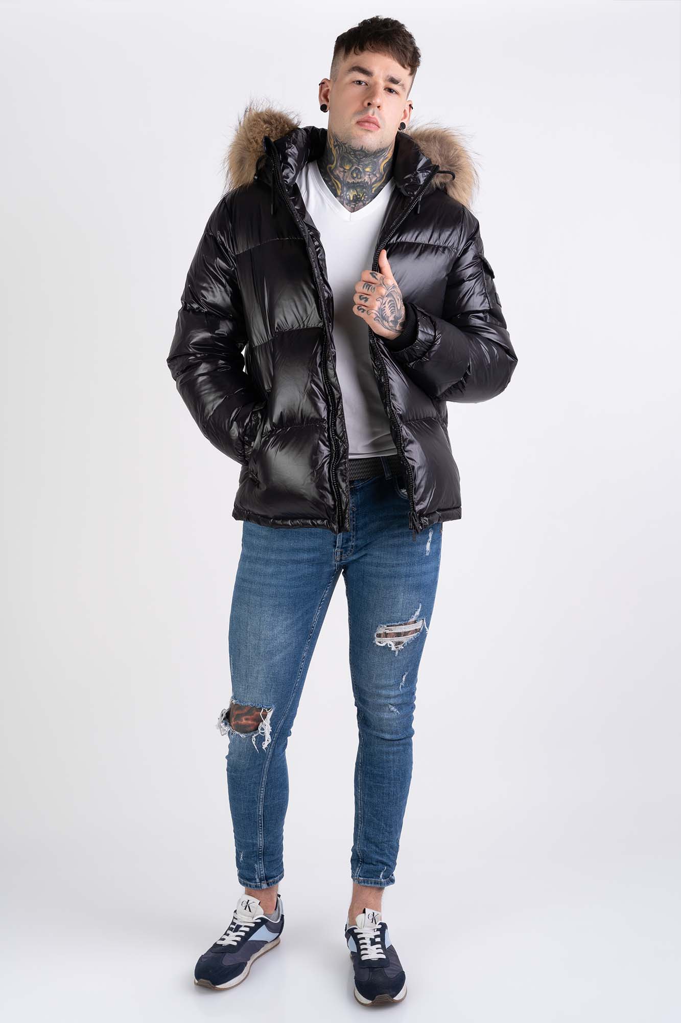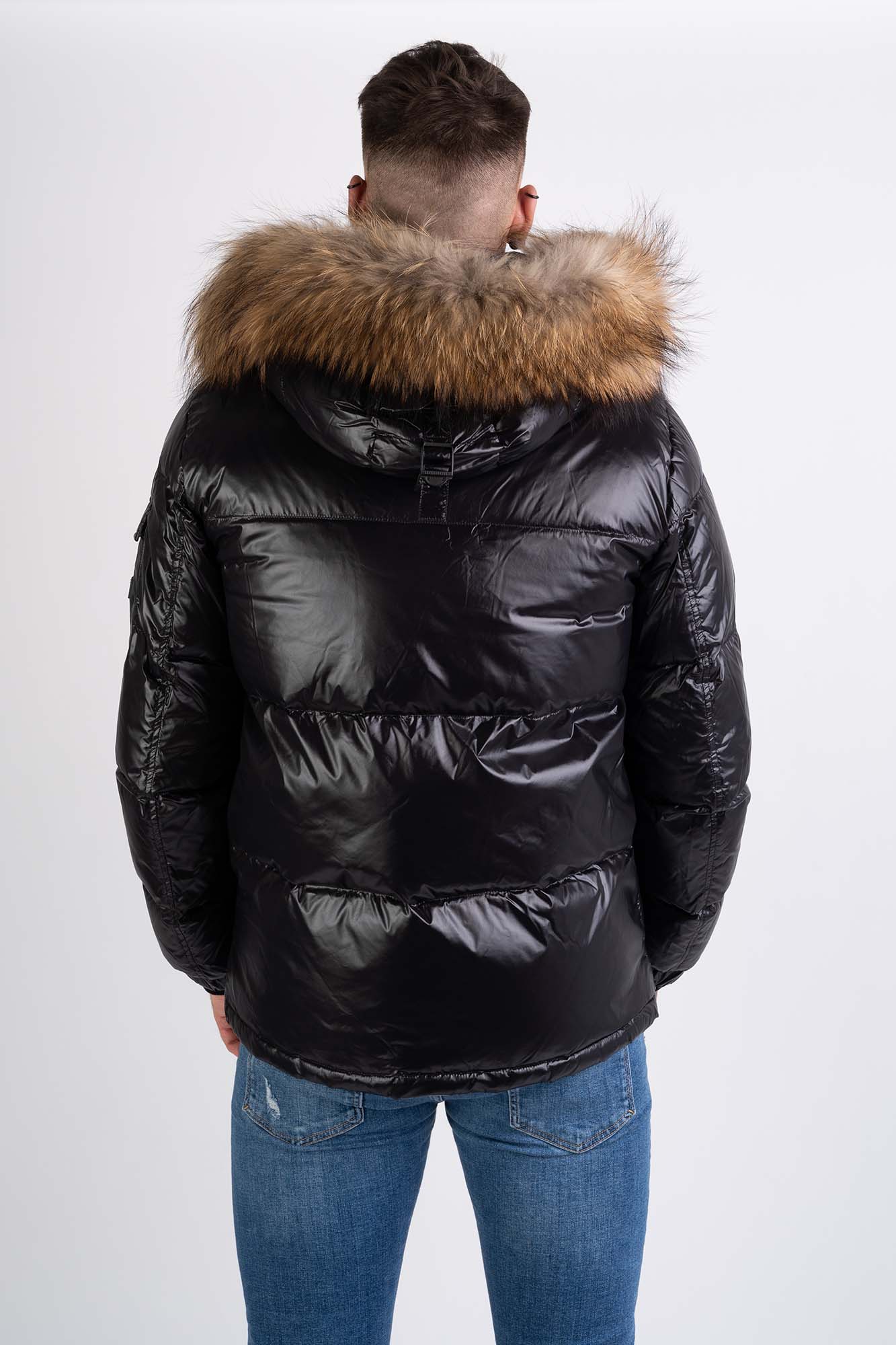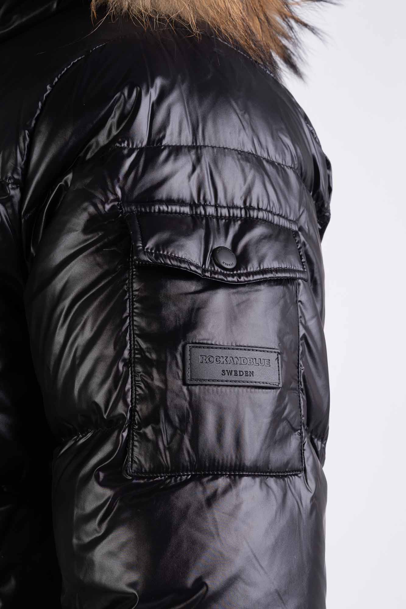 - Czarna męska kurtka puchowa z kapturem, wypełnienie z naturalnego puchu, obszycie kaptura z naturalnego futerka, doskonała jakość wykonania ROCKANDBLUE. Kurtka z certyfikatem BIONIC-FINISH®ECO, technologia przyjazna środowisku.