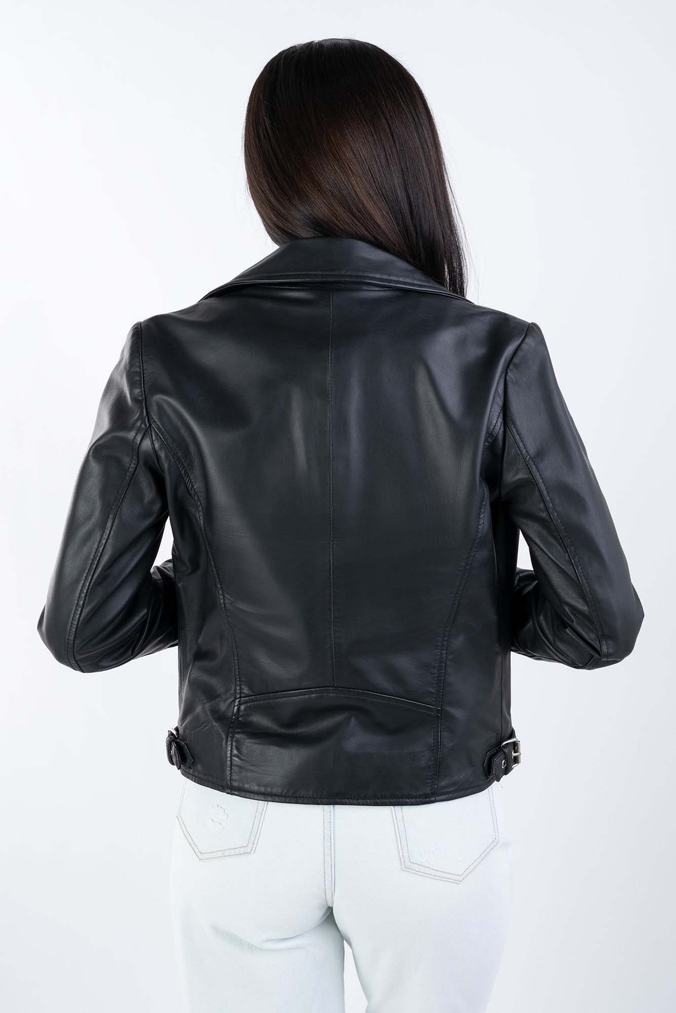 - Czarna damska kurtka skórzana ramoneska