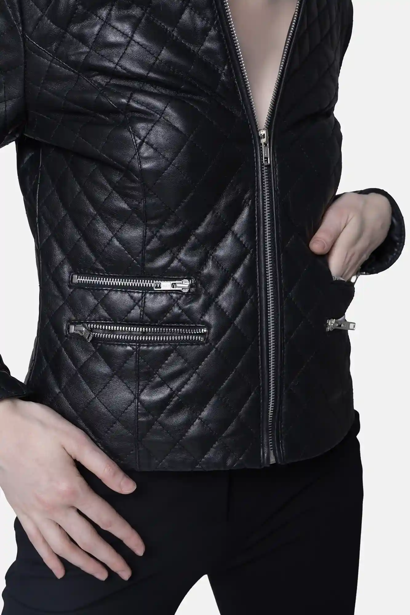 Kurtka skórzana damska pikowana, szczegóły modelu: