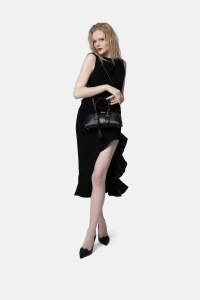 Pinko sukienka czarna midi z akcentami żorżety Aramis
