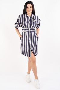 PINKO sukienka koszulowa w paski Chivasso Chemisier biało-granatowa