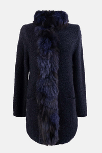 SAKI Cardigan Mallory płaszcz z futrzanym kołnierzem foletowy