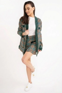Pinko kardigan w kratę z ozdobnymi kryształkami zielony TAIDONG